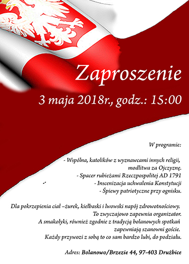 Zapraszamy do udziału w obchodach rocznicy uchwalenia Konstytucji 3 maja.