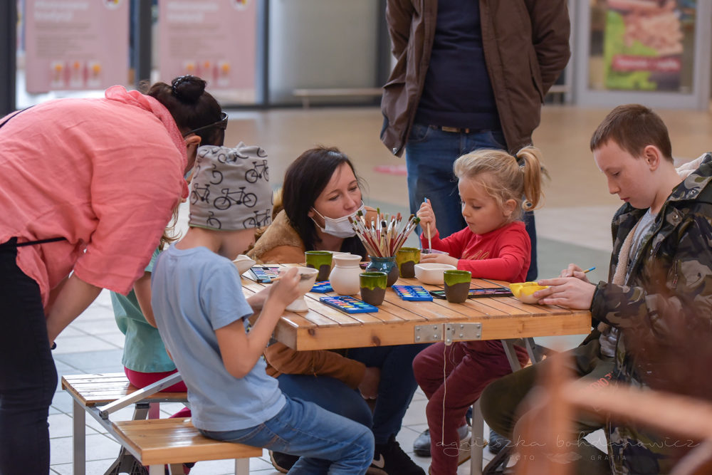 Było warto, bo w efekcie odwiedziło nasze pracownie w M1 wielu łodzian, sporo też skorzystało z możliwości wzięcia udziału w warsztatach garncarskich, hafciarskich i wycinankarskich. Bardzo nas cieszyły uśmiechnięte buzie dzieci i zainteresowanie dorosłych pracowniami m.in repuserską, plecionkarstwa, witraży czy szewstwa. Pan wikliniarz niemal wyprzedał stoisko!